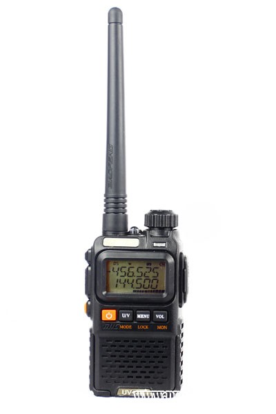 Baofeng UV - 3R adalah F.C.C. kompak Bagian 90 tangan memegang transceiver menyediakan 2 watt dalam rentang frekuensi 136-174 MHz dan 400-470 MHz . Ini fitur 99 kenangan , kontrol sederhana , Tinggi / Rendah daya , time-out timer, kunci , saluran memantau , VOX , CTCSS encode , 1750 Hz meledak , layar dual band , baterai saver, senter LED , peringatan baterai rendah dan peringatan darurat . Itu akan cocok di saku baju Anda dengan ruang untuk cadangan di hanya 1,75 x 3,25 x 0,95 " . The UV - 3R dilengkapi dengan baterai Li -ion , AC charger , standar SMA antena , manual dan klip sabu